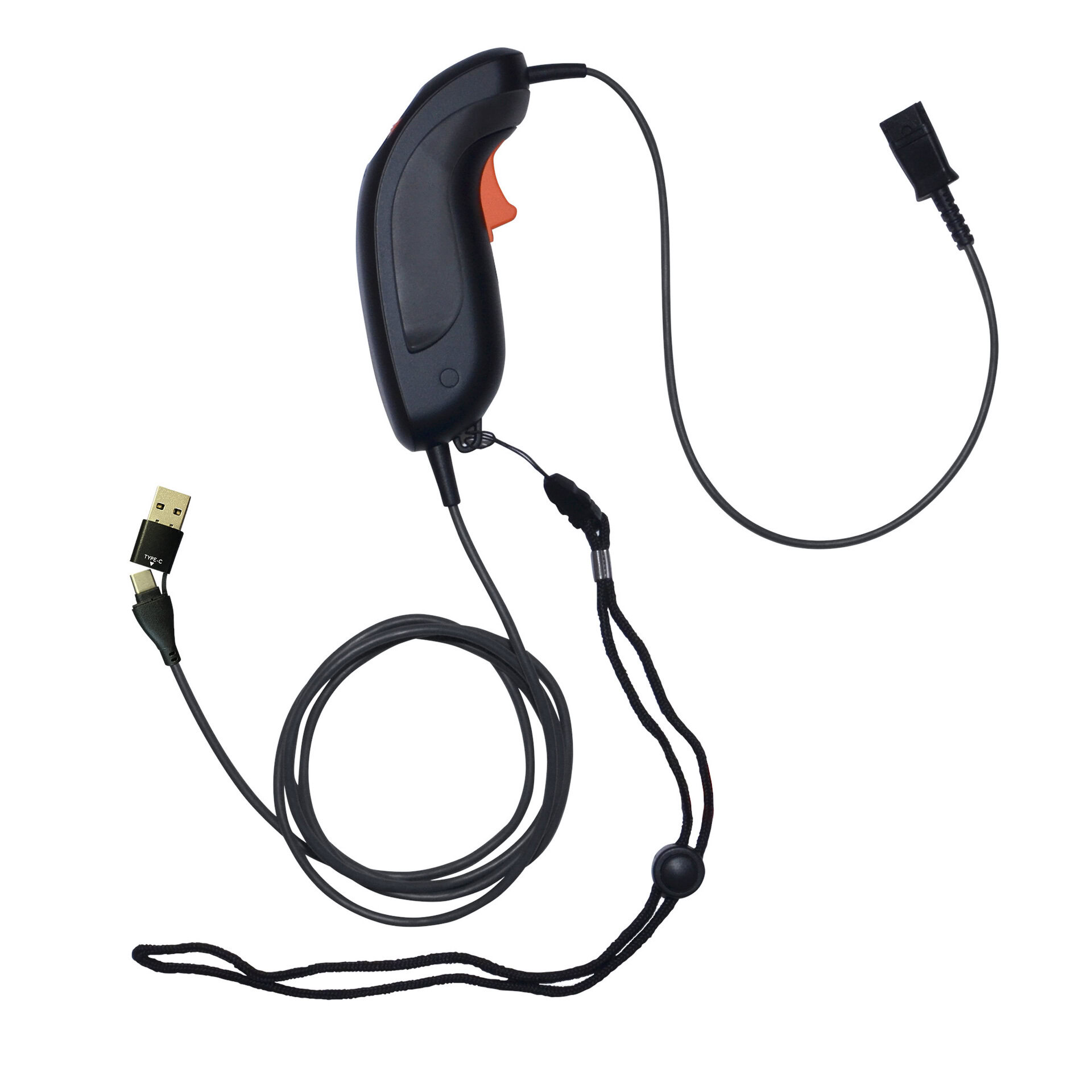 With Poly/Plantronics/HP quick disconnect connector for connecting various headsets with QD plug. Also includes USB-A or USB-C adapter connector for connection to your voice communication system. An ergonomically designed push-to-talk amplifier adapter for emergency services, air traffic controllers and many other applications, including military use.