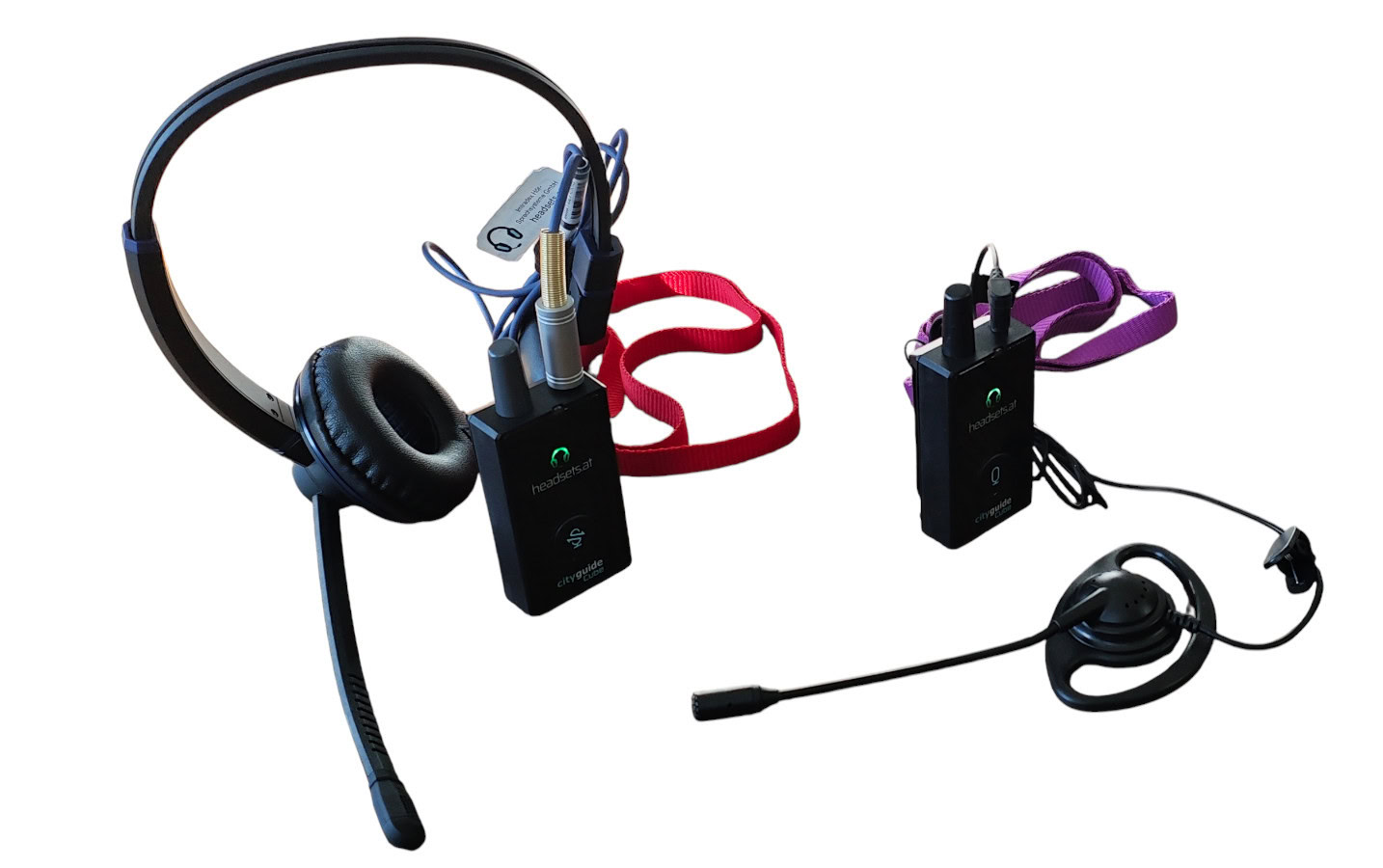 Der Stadtführer kann seinen Sender wahlweise mit einem Clipmikrofon oder diversen optionalen Headsetmikrofonen mit geräuschkompensierten Mikrofonen für noch bessere Sprachqualität kombinieren.