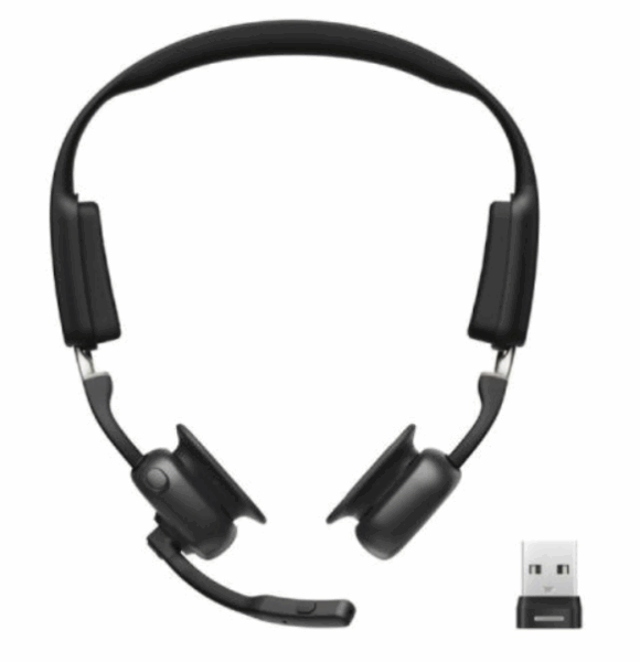 Das Shokz OpenMeet UC Kopfbügel-Headset ist ein professionelles Open-Ear Knochenschall-Headset mit Dual-Mikrofon, LeakSlayer-Technologie, Bluetooth 5.4, USB-A oder USB-C Dongle für stabile Verbindungen, 15 h Akkulaufzeit, ergonomischem TitaniumFlex-Kopfbügel und bietet komfortable, klare Kommunikation für Büro, Homeoffice und mobile Arbeitsplätze.