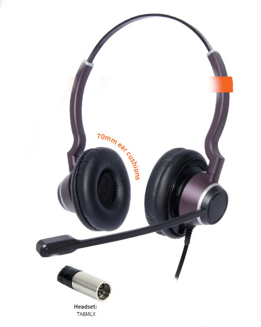 Doppelseitiges Splitting Kopfbügel-Headset, mit links und rechts getrennten Audiokanal, geräuschkompensierten Mikrofon, große 70mm Ohrpolster, mit TA6-Stecker für Splitting-PTT-Adapter mit TA6-Buchse